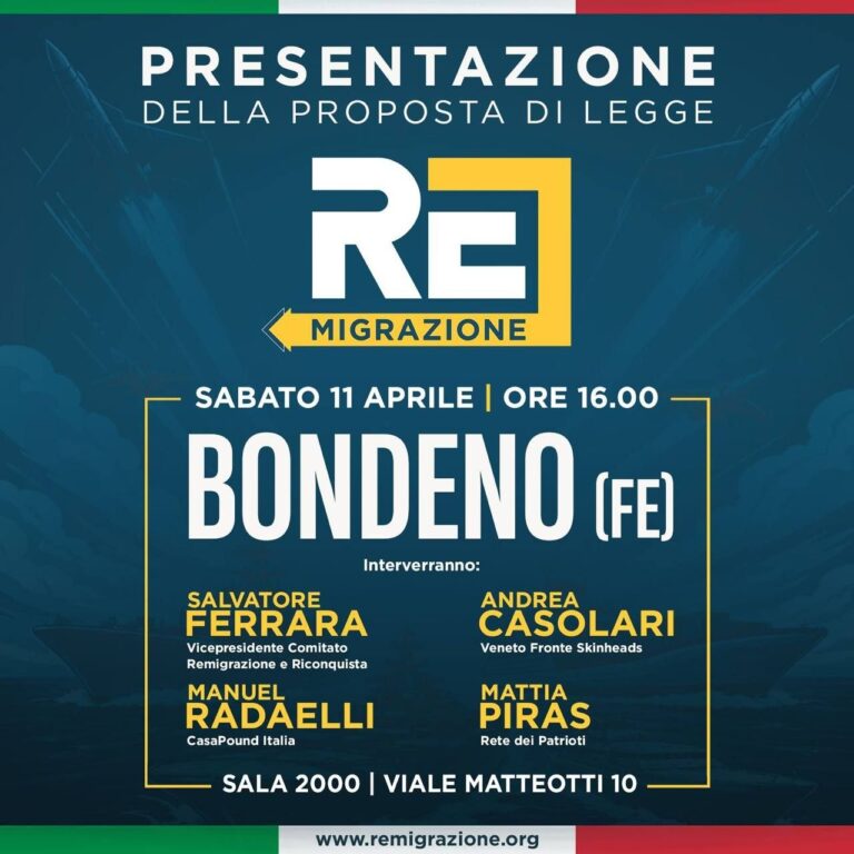 Roma, 2 aprile - “Oggi arriva un segnale chiaro: 32 parlamentari di PD, AVS e Movimento 5 Stelle sono stati sospesi per aver occupato la sala stampa e fatto annullare un’iniziativa che era, semplicemente, legittima. È stato ribadito un principio: abbiamo il diritto di parlare, di esistere, di portare avanti le nostre idee e le nostre proposte. E loro questo diritto non possono cancellarlo. Torneremo presto in Parlamento con il triplo delle firme necessarie e vedremo se stavolta non ci faranno entrare”. Così Luca Marsella, presidente di Remigrazione e Riconquista commenta il provvedimento nei confronti dei parlamentari che occuparono la sala stampa della Camera contro la presentazione della proposta di legge sulla remigrazione.