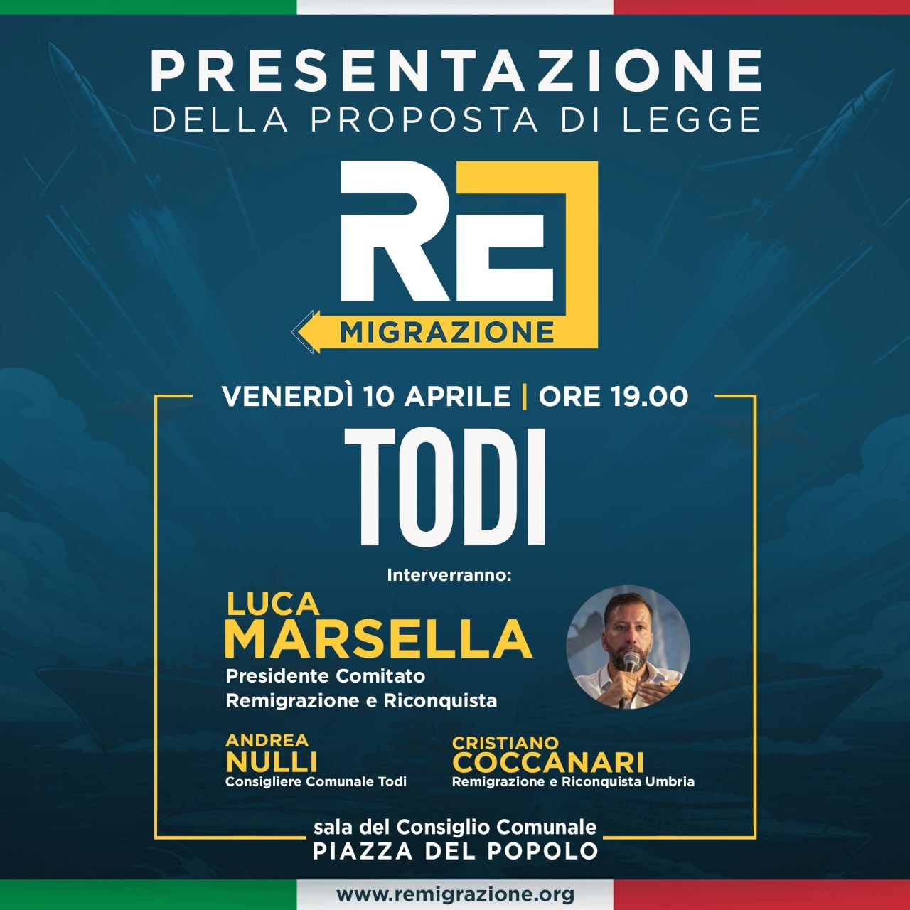 Per la prima volta in Umbria verrà presentata la proposta di legge sulla Remigrazione: una proposta concreta per affrontare un problema che tutti vedono, ma che in pochi hanno il coraggio di affrontare davvero.